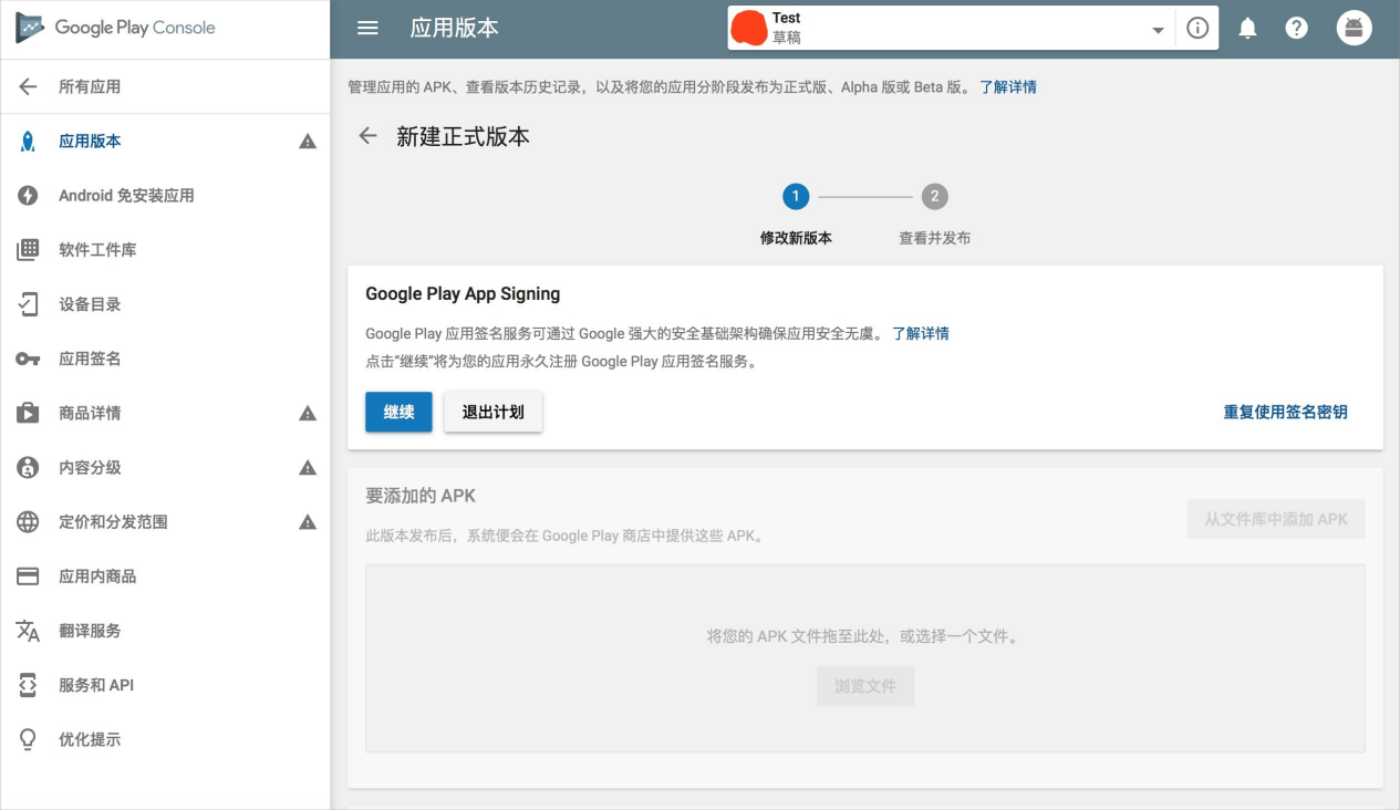 选择加入Google Play App Signing其实就是:通过Google Play的应用程序签名,Google会为您管理和保护您应用的签名密钥,并使用它来签署您的APK以进行分发。这是一种存储应用程序签名密钥的安全方式,可在您的密钥丢失或受损时帮助保护您。